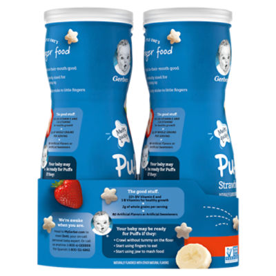 Gerber puffs and yogurt and many more wholesome nutritious snacks for baby. Shop all kinds of baby snacks. Rice flour whole wheat flour wheat starch cane sugar whole grain oat flour natural strawberry apple flavor includes strawberry juice concentrate and acetic acid dried apple.